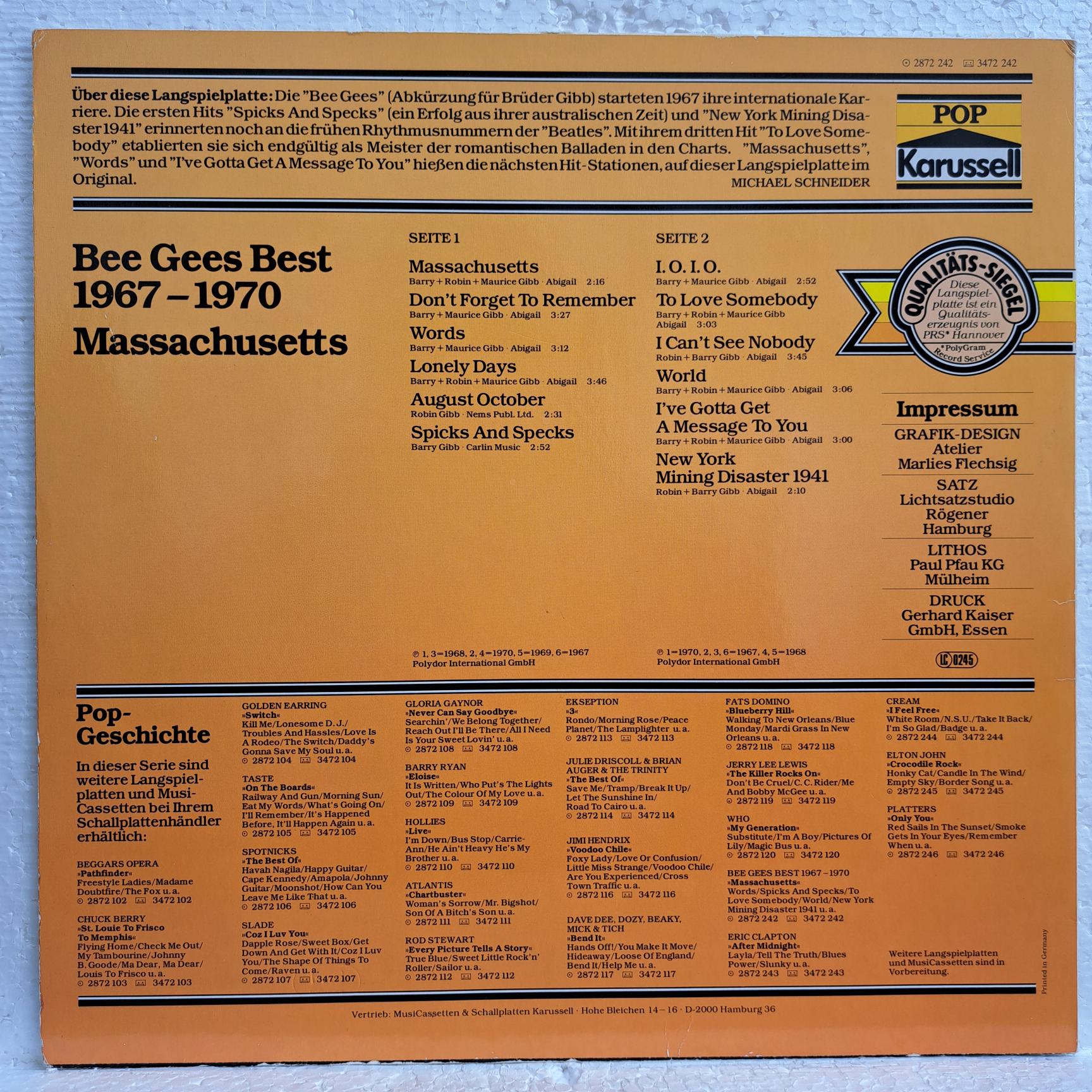 Disc VINIL Anticariat : Bee Gees – Bee Gees Best 1967-1970 / Massachusetts