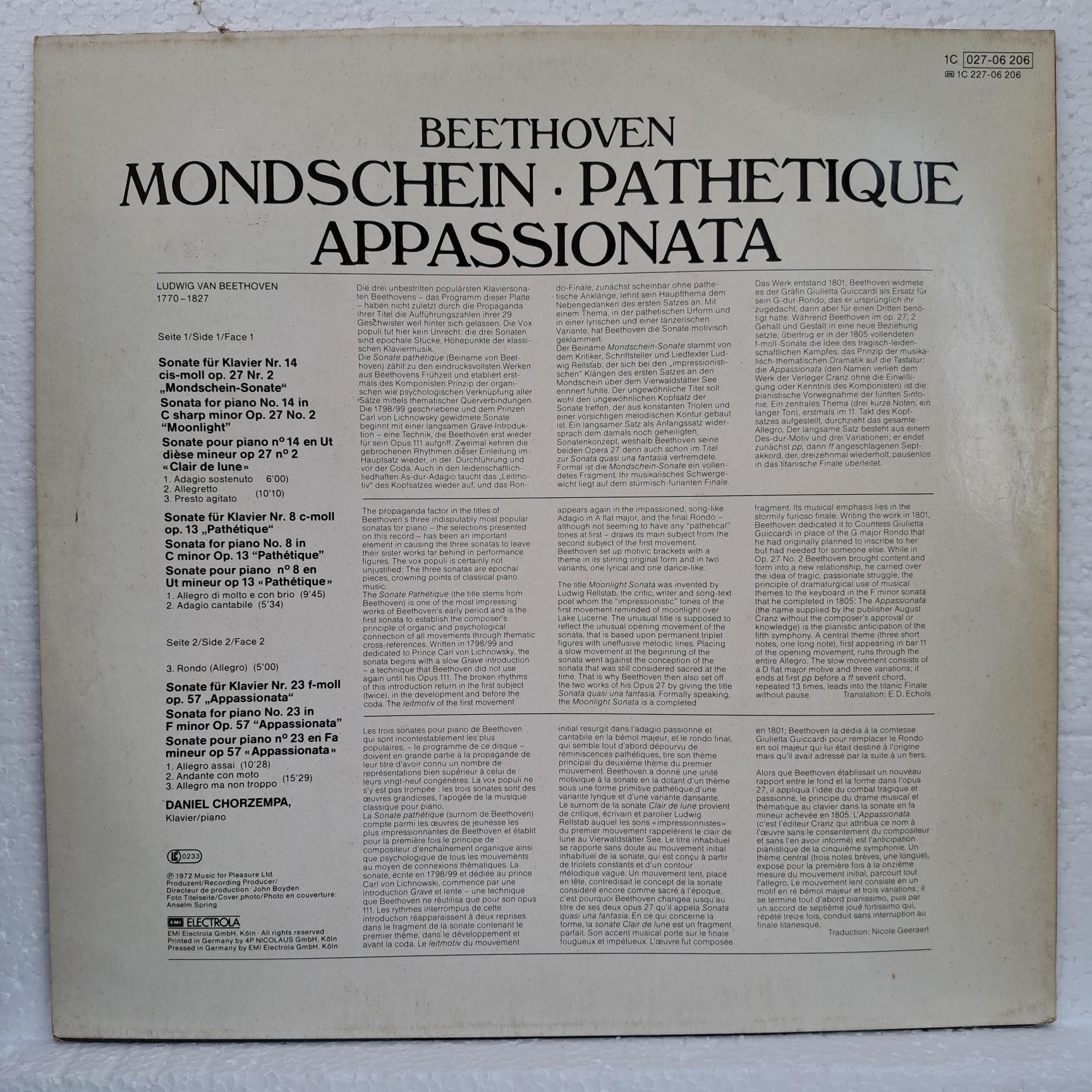 Disc VINIL Anticariat : Beethoven, Daniel Chorzempa – Mondschein Pathetique Appassionata
