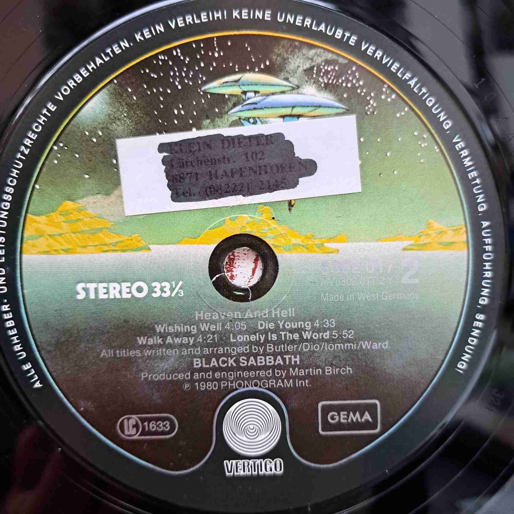 Black Sabbath – Heaven And Hell Disc VINIL LP VG VG+