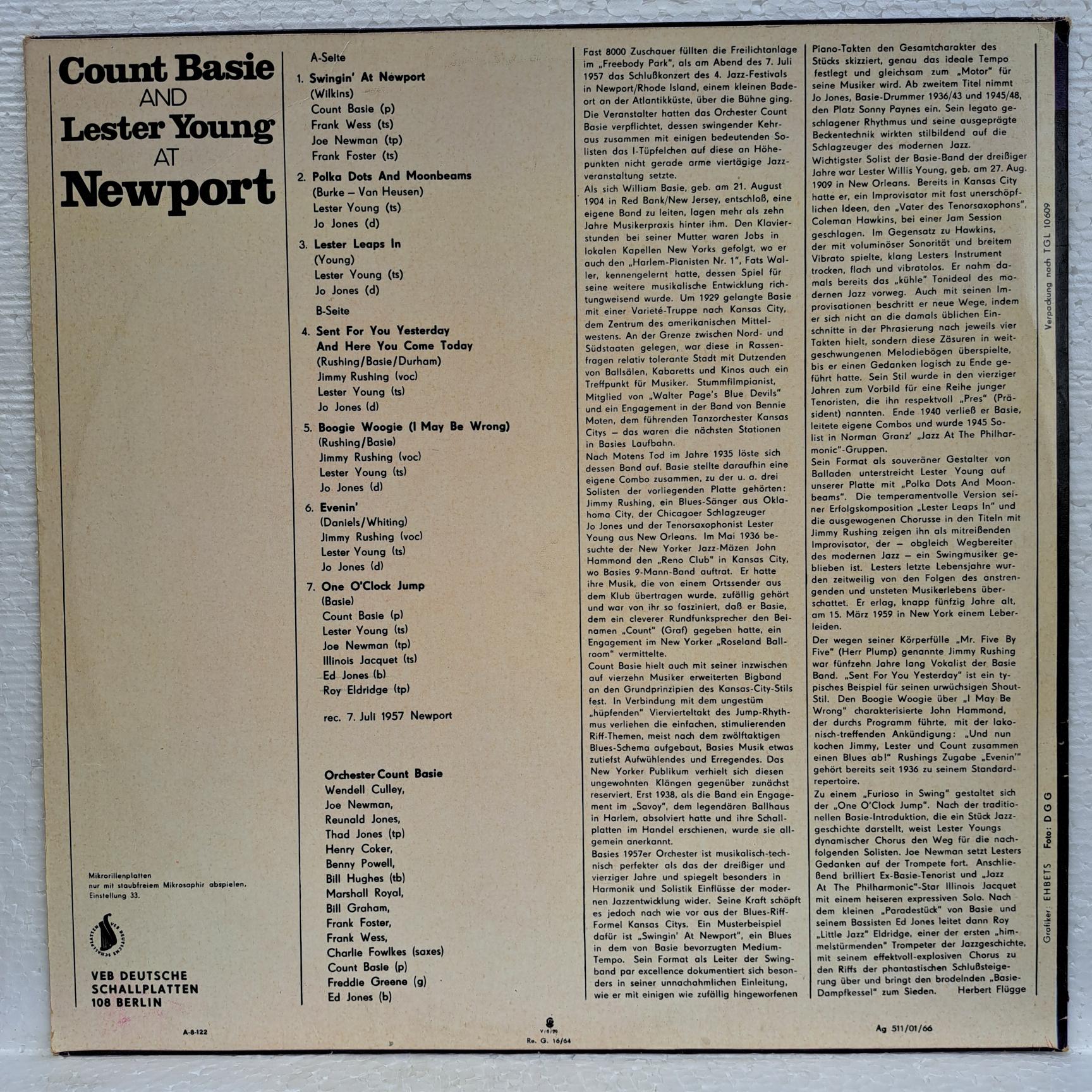 Count Basie, Lester Young – Count Basie And Lester Young At Newport Disc VINIL LP VG VG+