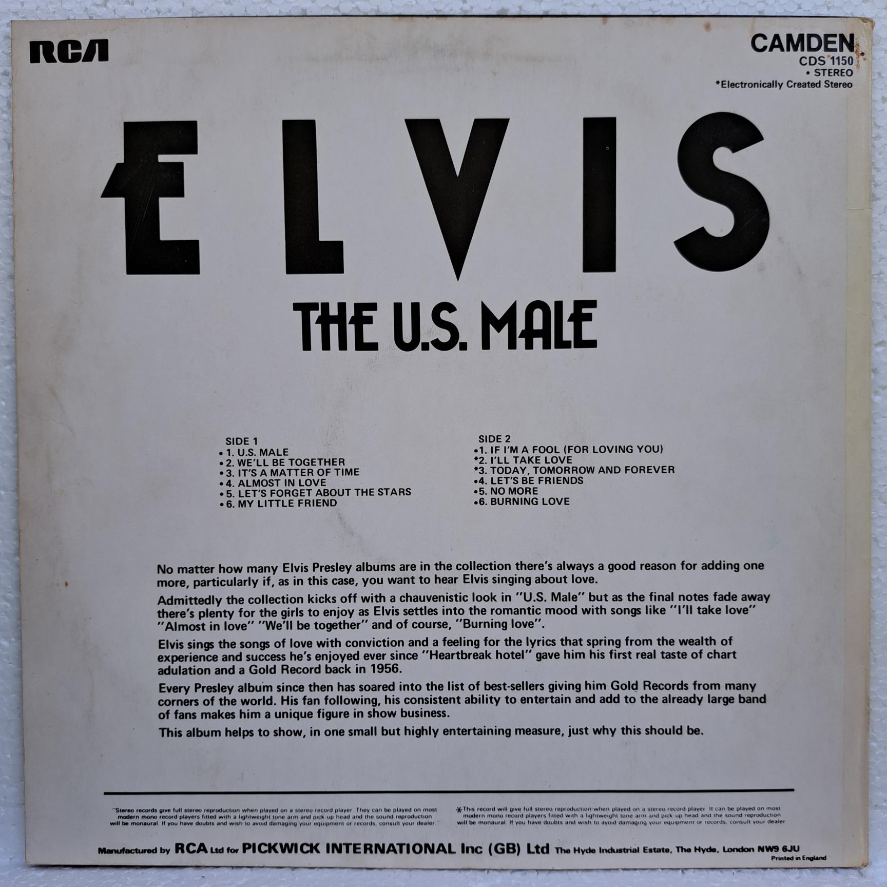 Elvis – The U.S. Male Disc VINIL LP VG VG+ (box2)