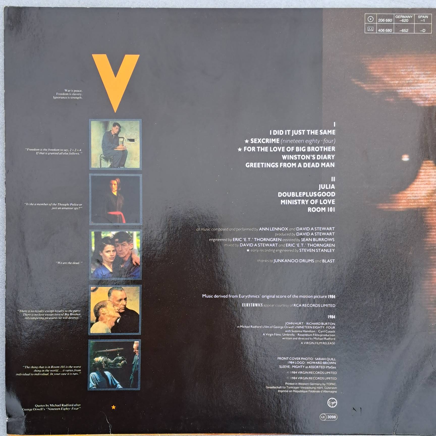Eurythmics – 1984 (For The Love Of Big Brother) Disc vinil LP VG VG+