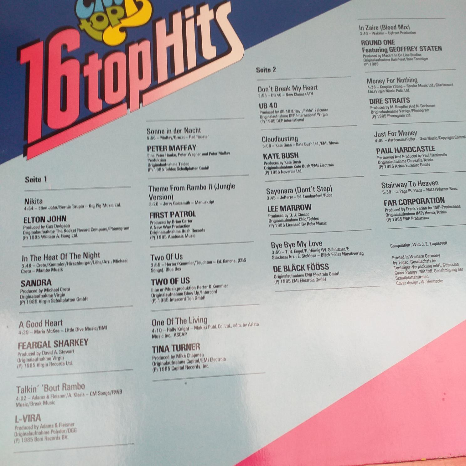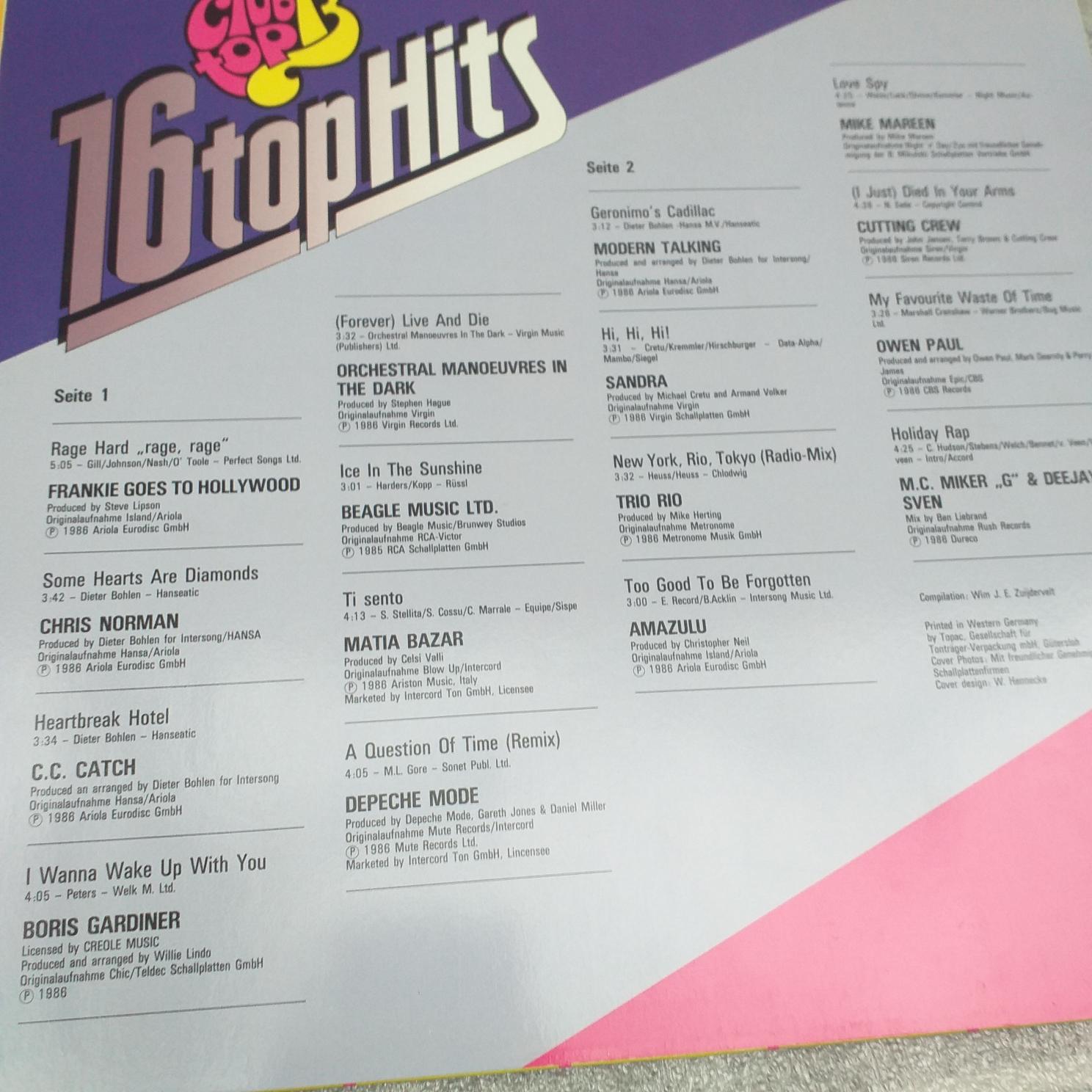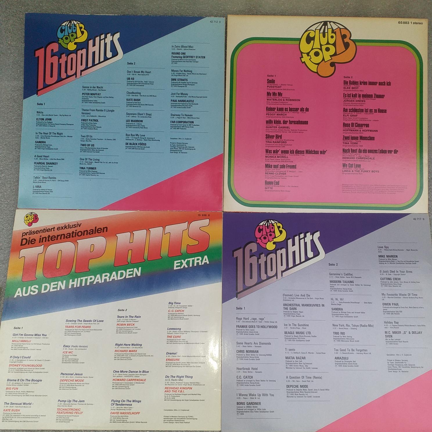 Ice MC – Mike Mareen – Modern Talking – OMD – Chris Norman – CC Catch – UB40 – Lee Marrow -Dire Straits – Sandra .Disc VINIL (5) LP VG+ CLUB TOP 13 – 16 hits The Cure – Depeche Mode -Milli Vanilli – David Hasseloff