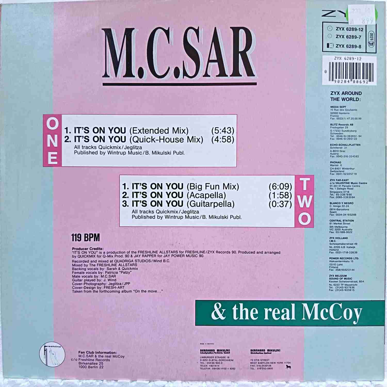 M.C. Sar & The Real McCoy – It’s On You – Disc VINIL MAXI VG+