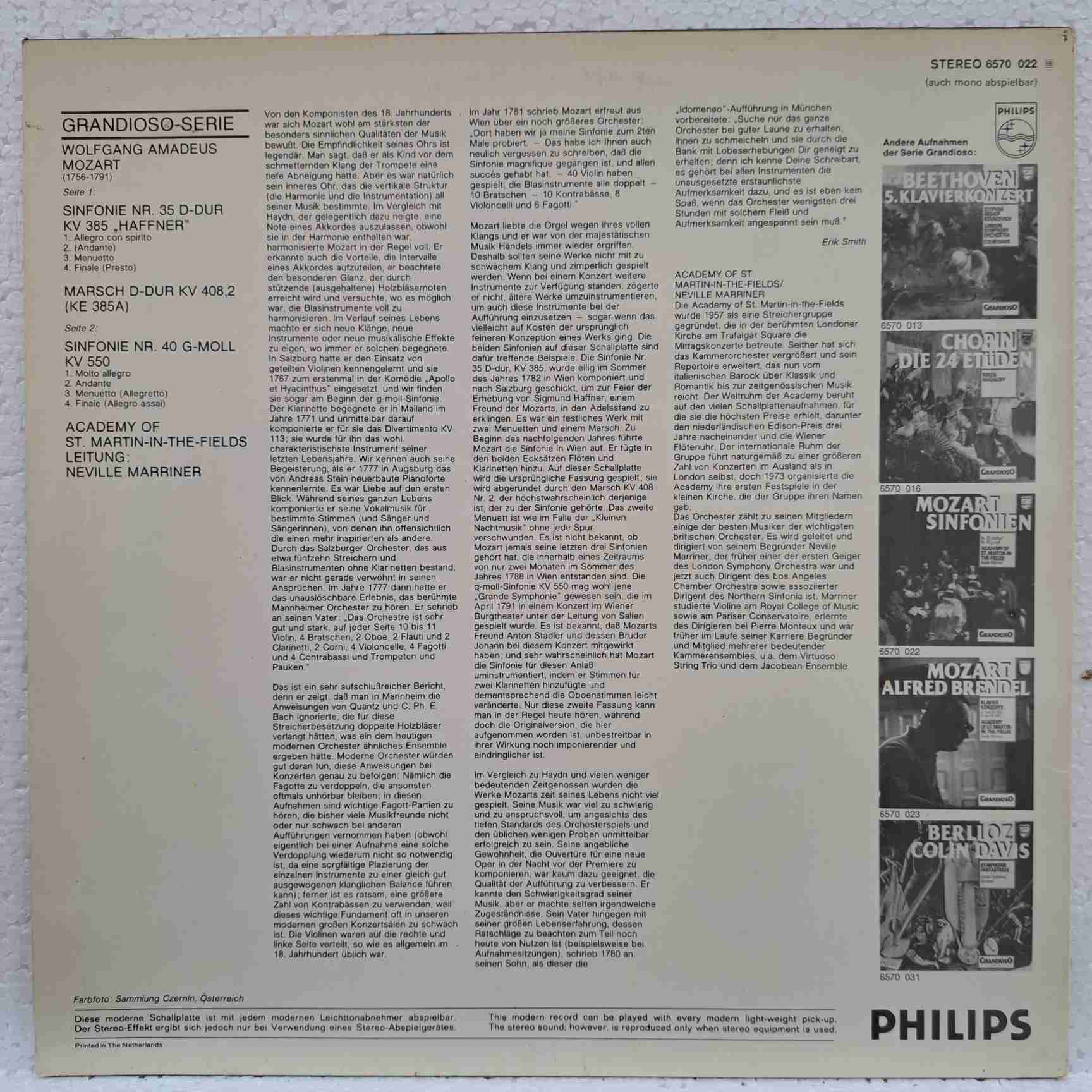 Disc VINIL Anticariat : Mozart Sinfonien: Nr. 35 „Haffner”, Nr. 40 G-moll