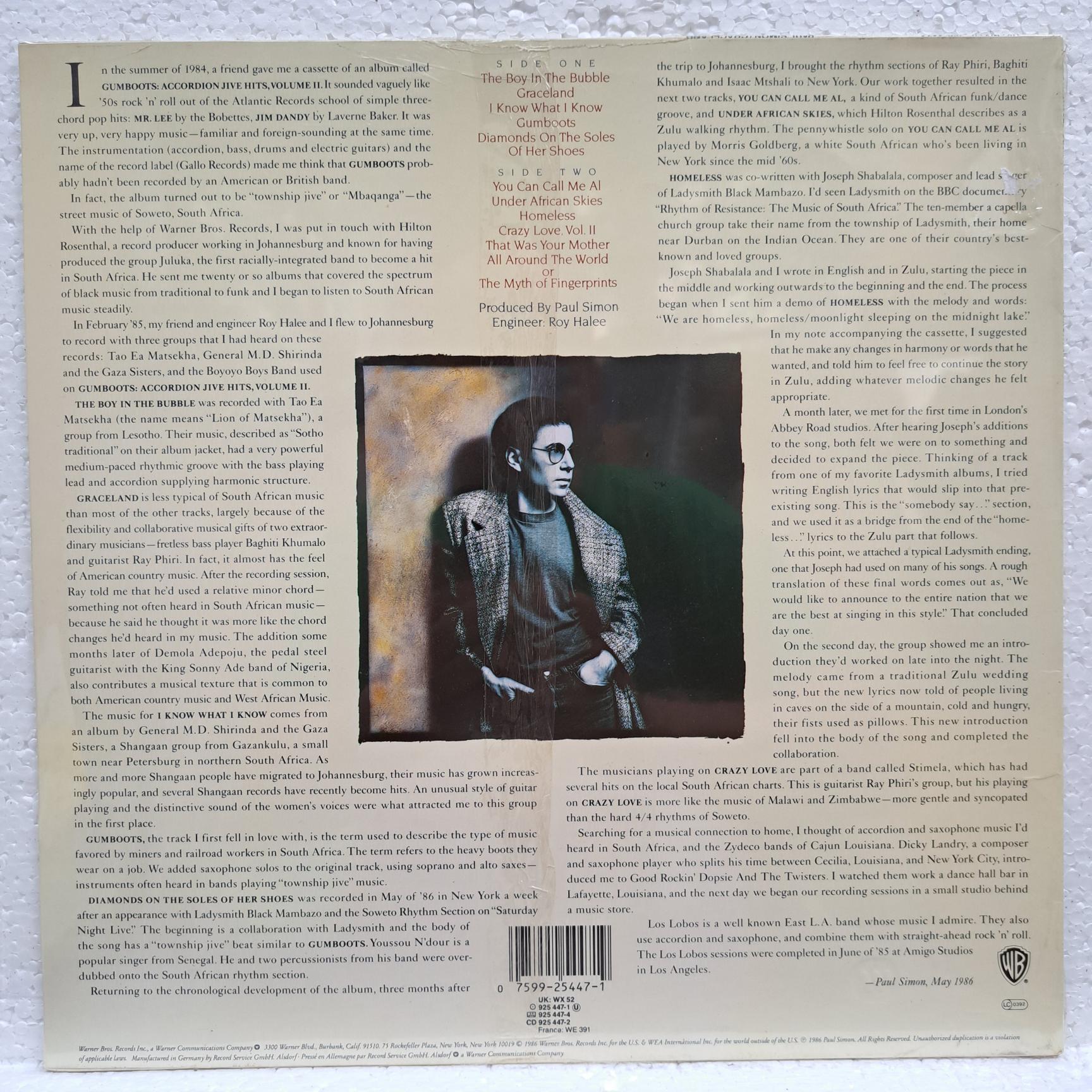 Paul Simon ‎– Graceland DISC VINIL LP MINT NOS (boxC)