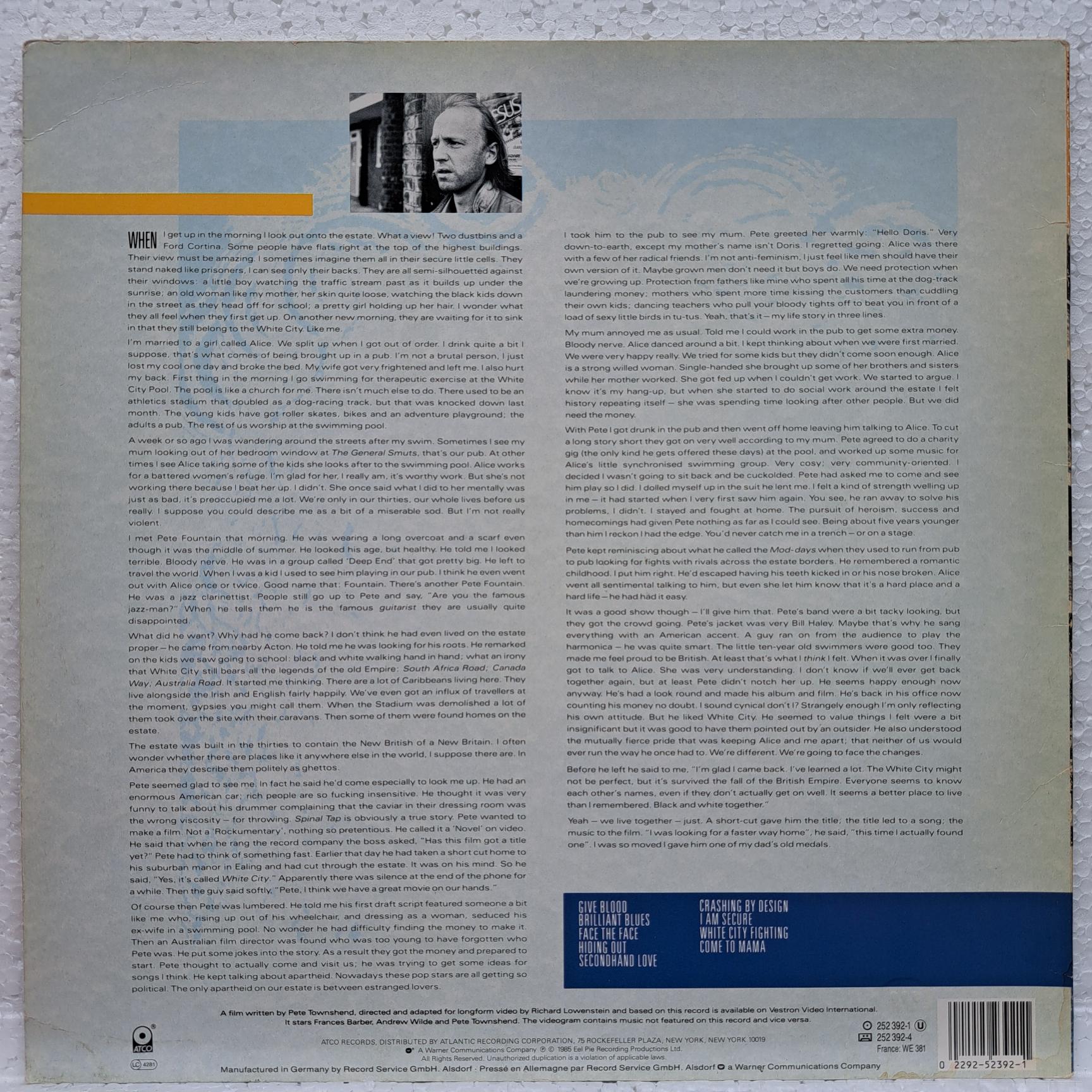 Pete Townshend – White City (A Novel) – Disc VINIL LP VG+ (box1)