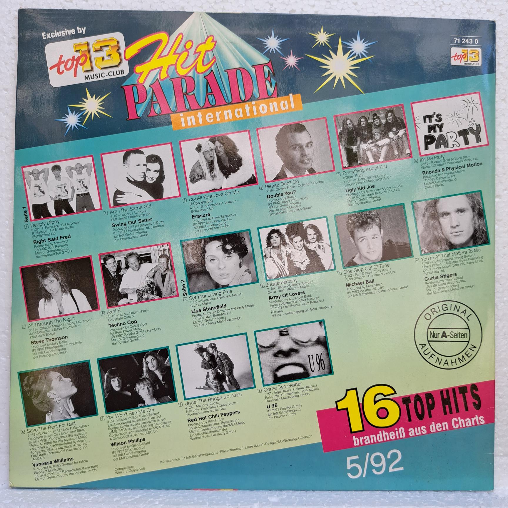 Disc VINIL Anticariat : Red Hot Chili Peppers, U 96, Michael Ball, Techno Cop, Erasure – Hit Parade International 5/92