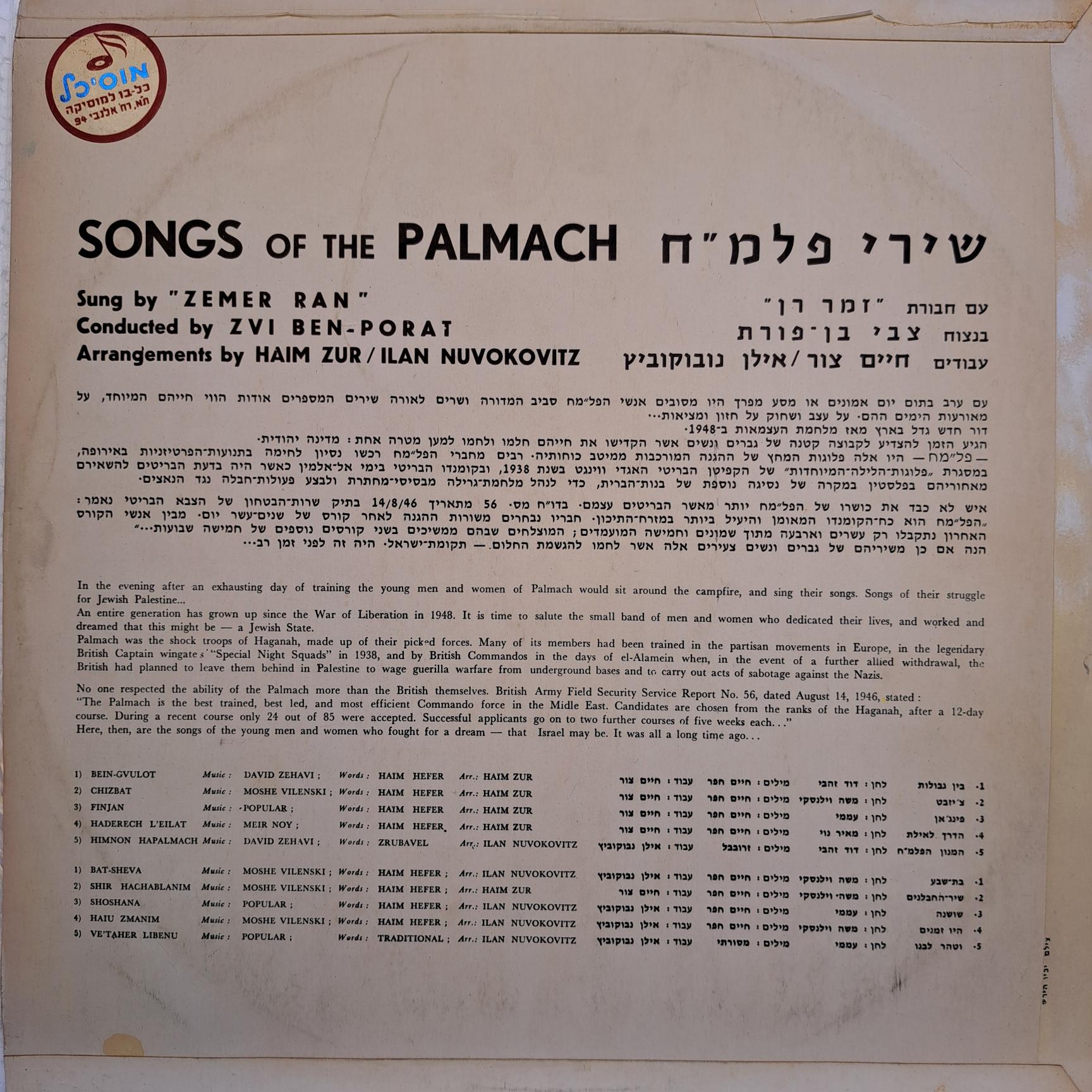 Disc VINIL Anticariat : Zemer Ran – Songs Of The Palmach
